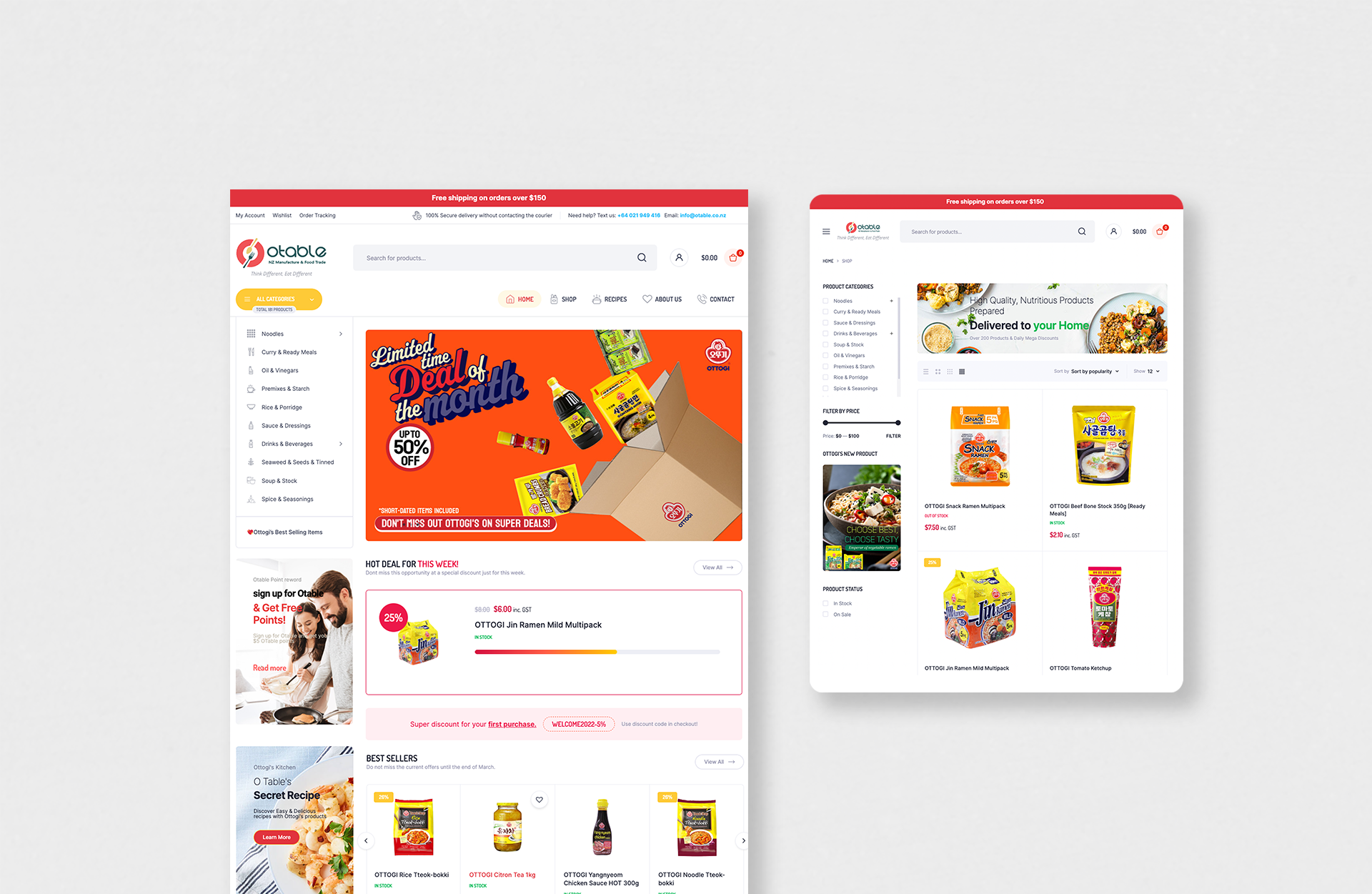 Otable is Ottogi’s official e-commerce website. After successfully developing the official Ottogi website and conducting digital marketing, we also developed a one-stop shopping B2C website for Ottogi products, resulting in increased sales through various events and promotions.